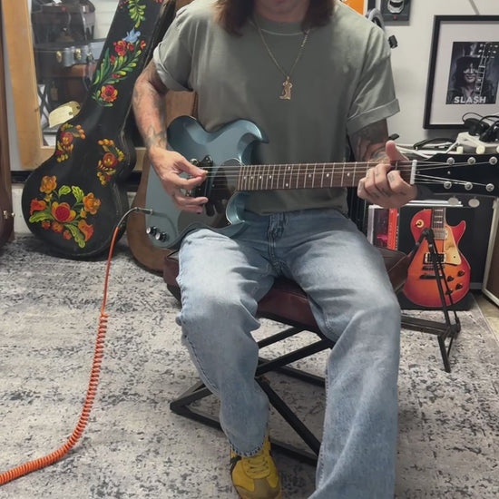 It has been said you can do it all with one (1) pickup...and this 63 SG Junior from the Gibson Custom Shop is one heck of a sexy SG Junior in Antique Pelham Blue! In "MINT" as new condition...originally purchased from the Gibson Garage as a Special Order. This model is a recreation of 1963 specs with the "Les Paul Junior" logo missing from the headstock, a small pickguard, Kluson deluxe 3 inline tuning pegs, and an medium shaped C neck for that vintage feel.